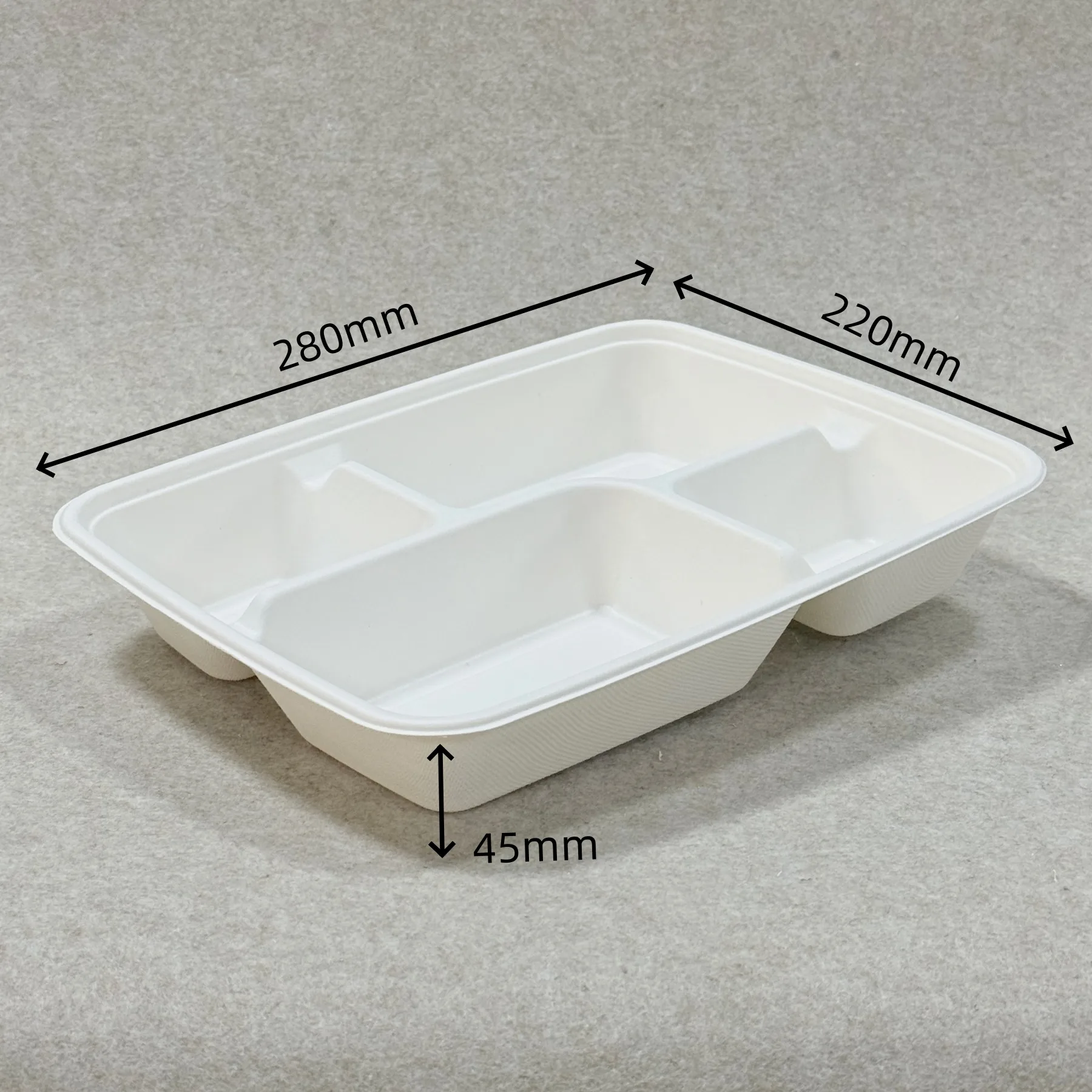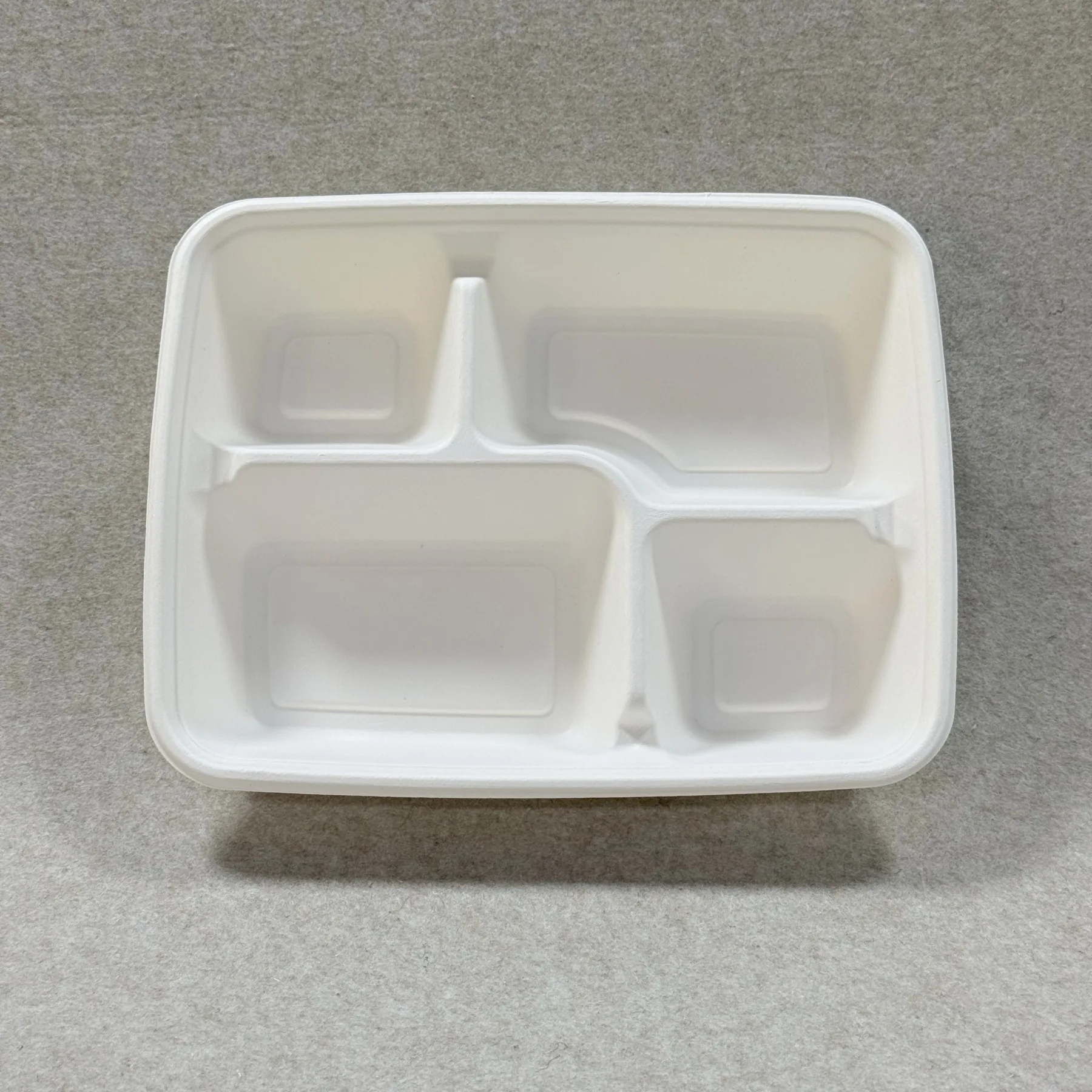 حاوية غداء قابلة للتحويل إلى سماد مع غطاء مكونة من 4 حجرات وهي عبارة عن صندوق وجبات مصبوب مصنوع من لب قصب السكر للوجبات الجاهزة وإعداد الوجبات وتجهيز الطعام وتعبئة وتغليف التوصيل. وهي تستبدل علب الوجبات البلاستيكية أو الرغوية التقليدية بصيغة نباتية تدعم تقديم الطعام المقسم ووضع استدامة أقوى.
