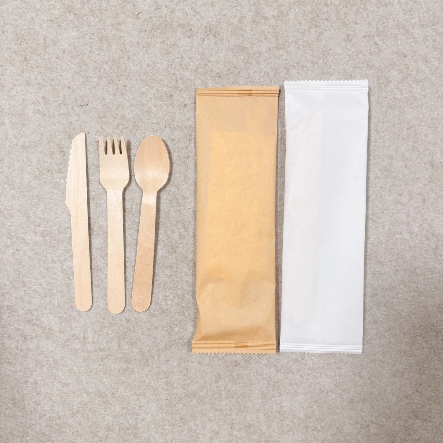 | DS0108-ZD | 4-in-1-Papiertüten-Packung Wodden-Besteck-Set | Messer+Gabel+Löffel+Serviette |