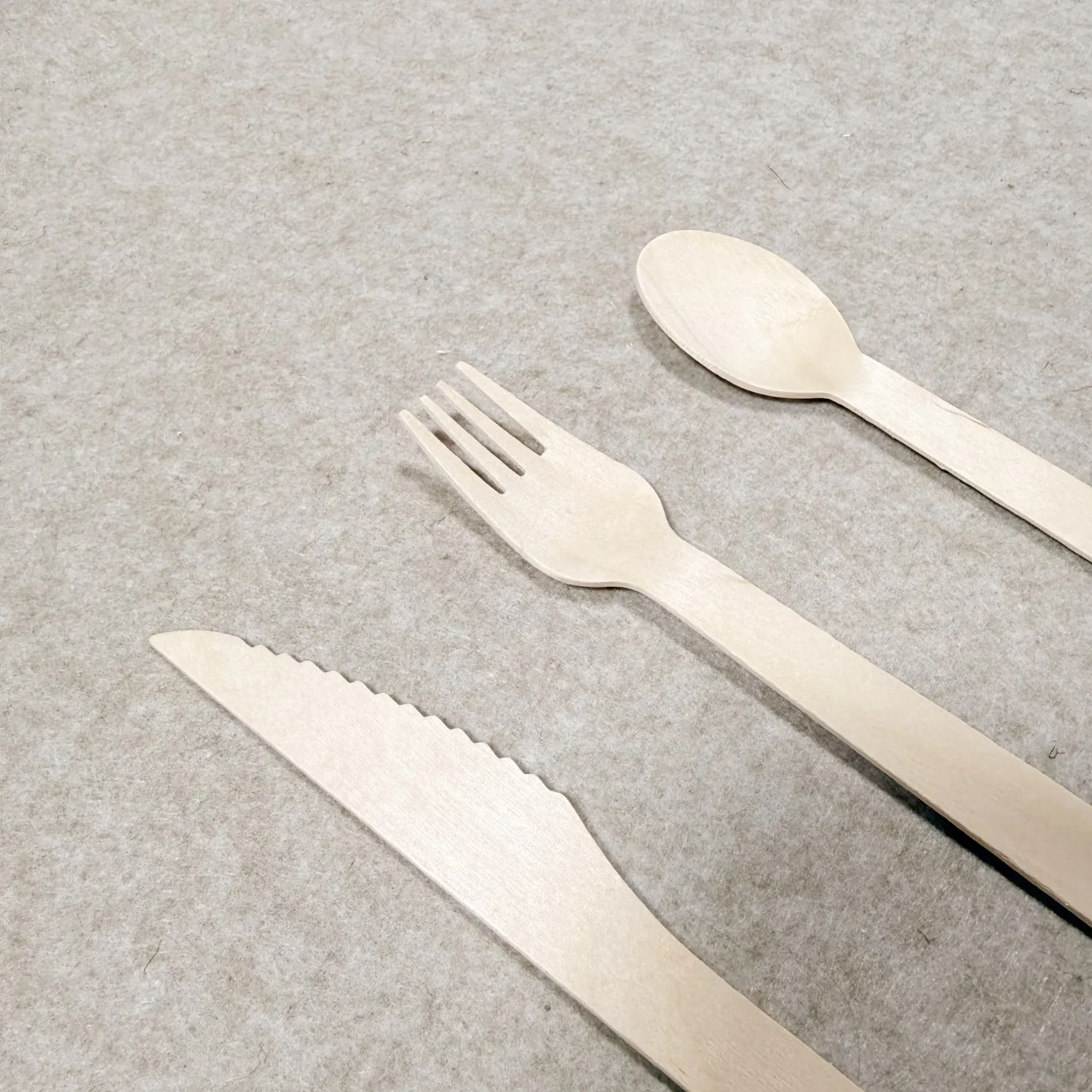 Jedes Holzbesteck wird hergestellt aus Birkenholz aus nachhaltigem Anbauein Hartholz, das für seine glatte Maserung, seine Festigkeit und seine Unbedenklichkeit im Kontakt mit Lebensmitteln geschätzt wird.