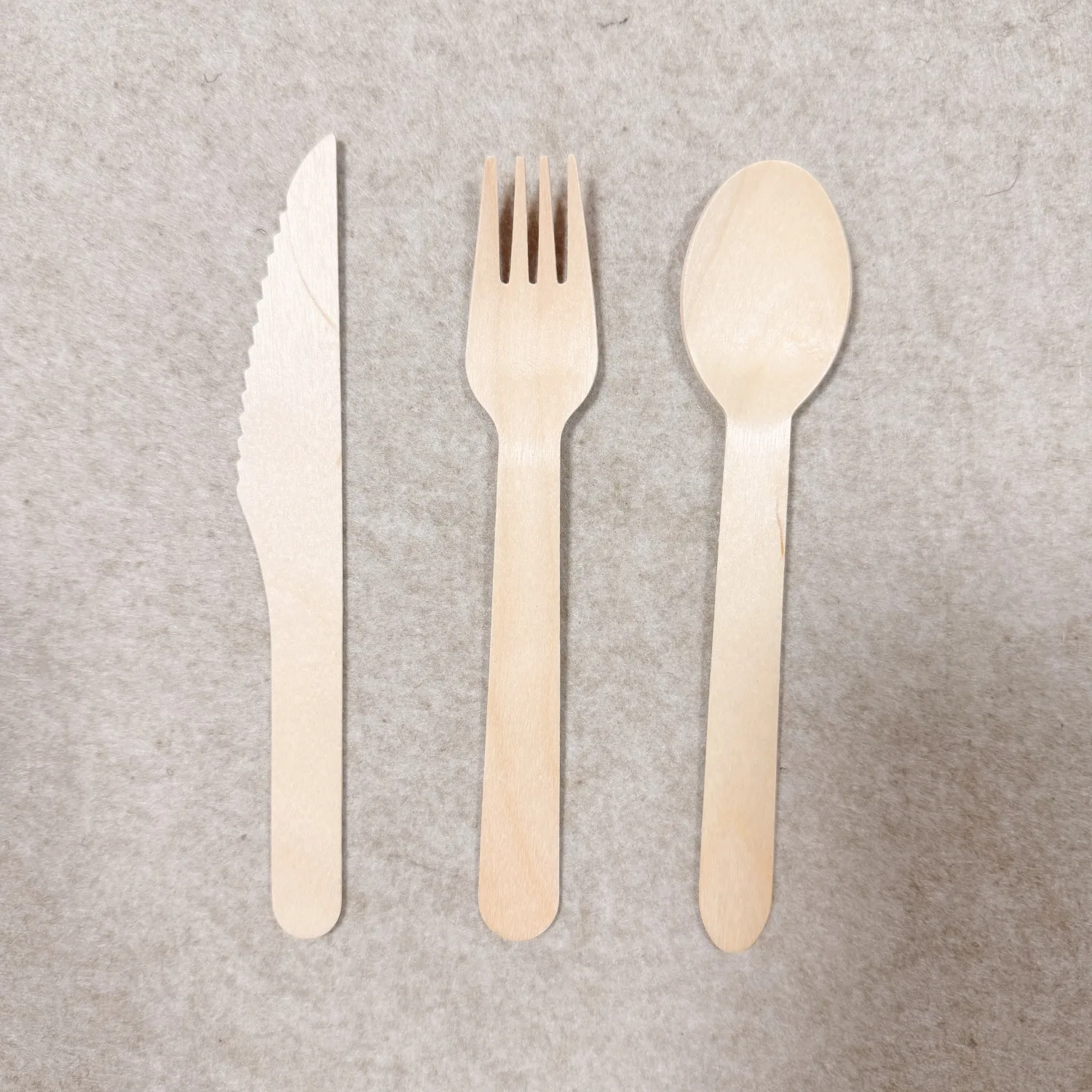 Anders als beschichtete oder zusammengesetzte Materialien benötigt Birkenholz keine Kunststoffbeschichtung oder chemische Behandlung, so dass diese Holzbesteck-Sets für den Einmalgebrauch Produkte, die auf natürliche Weise biologisch abbaubar und für den Weltmarkt geeignet sind.