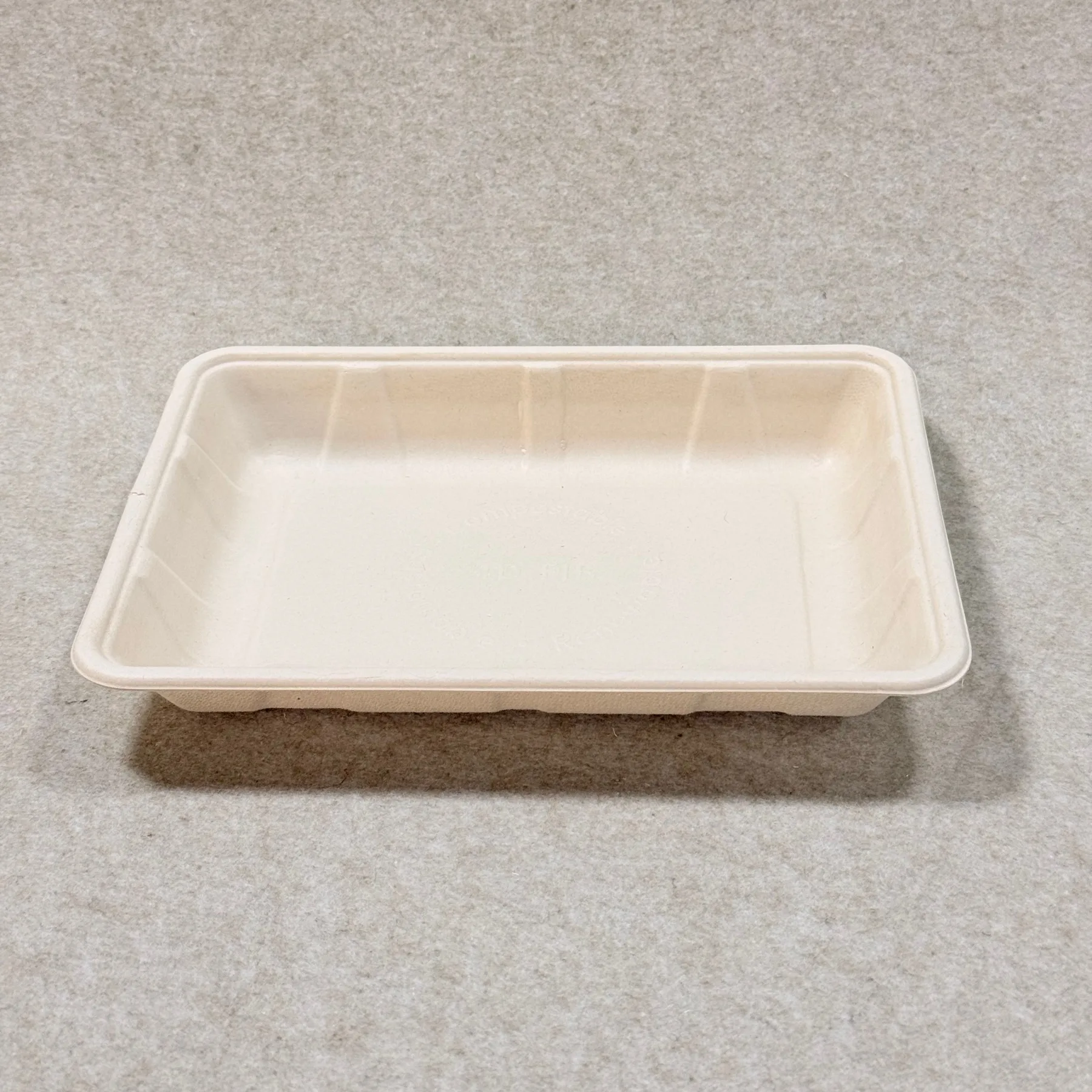 Bioleader® Fiber Pulp Molding Fruit & Vegetable Tray 10″ x 7″ wird aus Zuckerrohrbagasse hergestellt, einer erneuerbaren Pflanzenfaser, die bei der Zuckergewinnung entsteht. Anstatt als landwirtschaftlicher Reststoff entsorgt zu werden, wird diese natürliche Faser durch Zerfaserung, Formung, Heißpressen, Trocknung und Präzisionsendbearbeitung in geformte Zellstoffverpackungen umgewandelt.