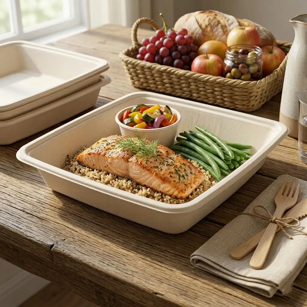 Les options adjacentes peuvent inclure des boîtes repas en bagasse plus petites, des plateaux à compartiments, des conteneurs à claire-voie, des bols en papier kraft et des boîtes alimentaires en papier. Le meilleur choix dépend du type d'aliment, de la taille des portions, des besoins en matière de transport et du fait que le menu nécessite une présentation séparée ou ouverte.