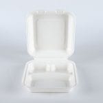 Questo tipo di Scatola bento a 3 scomparti è costruito utilizzando la bagassa della canna da zucchero come scarto della produzione di zucchero. Questa materia prima può essere classificata come risorsa rinnovabile in quanto è compostabile e biodegradabile, a differenza della plastica e del polistirolo. Ne consegue che la scatola è costruita con materiali validi per l'ambiente, riducendo al minimo l'inquinamento e i problemi di gestione dei rifiuti per la società.