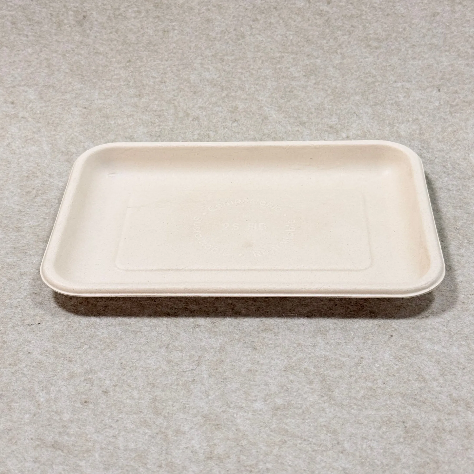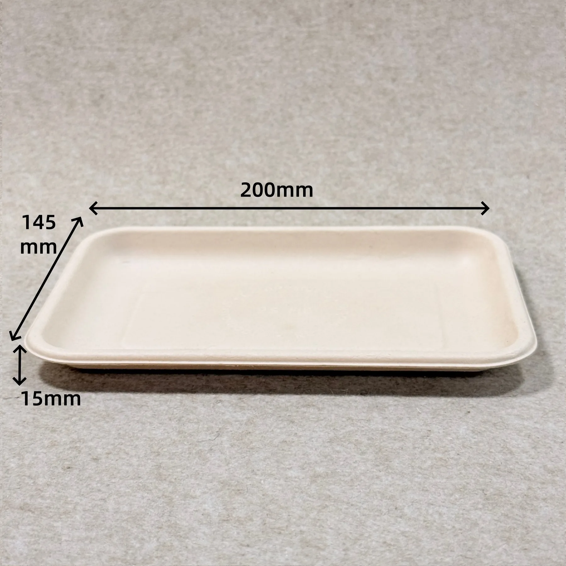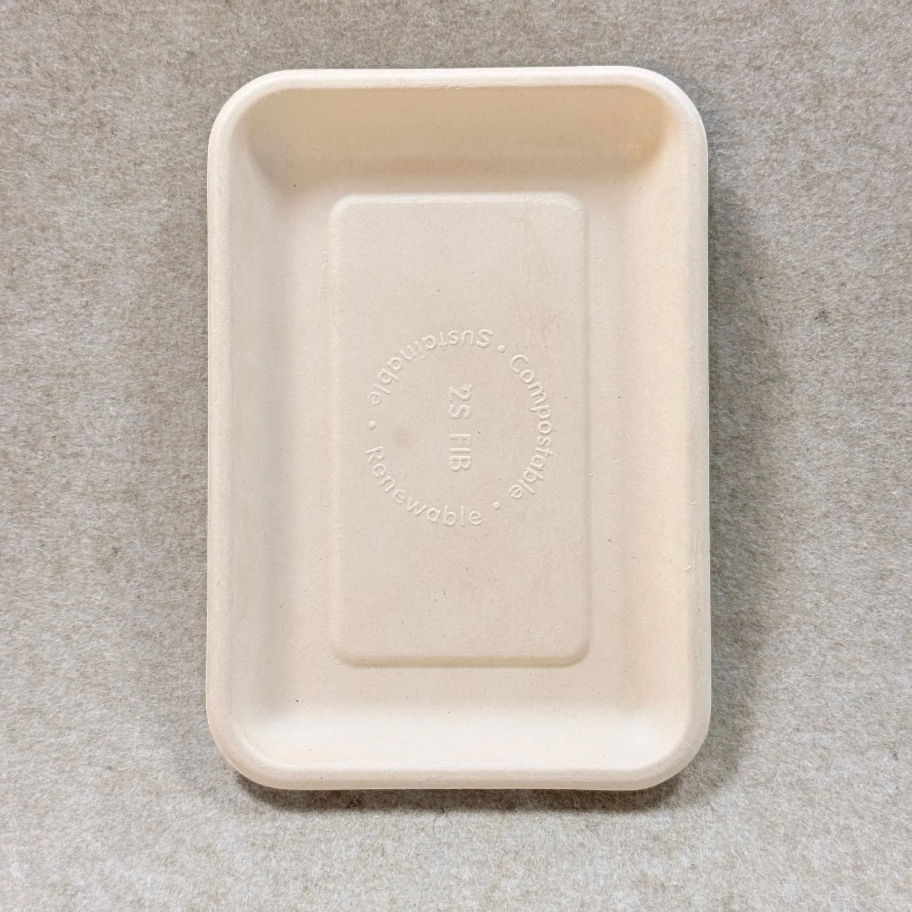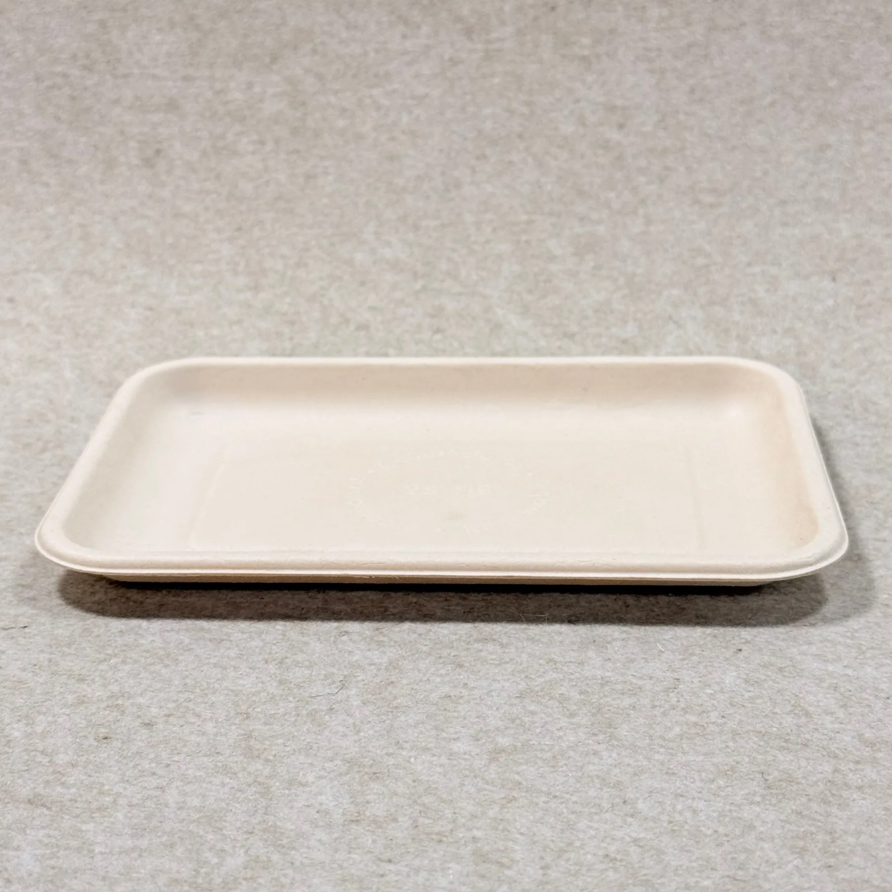 Vassoio per supermercati compostabile Bioleader® 8″ x 5,5″ è ricavato dalla bagassa della canna da zucchero, una fibra vegetale rinnovabile che rimane dopo l'estrazione dello zucchero. Invece di essere trattato come scarto agricolo, questo materiale naturale viene riutilizzato in imballaggi in pasta stampata attraverso la spappolatura, la formatura, la pressatura a caldo, l'essiccazione e la finitura di precisione.