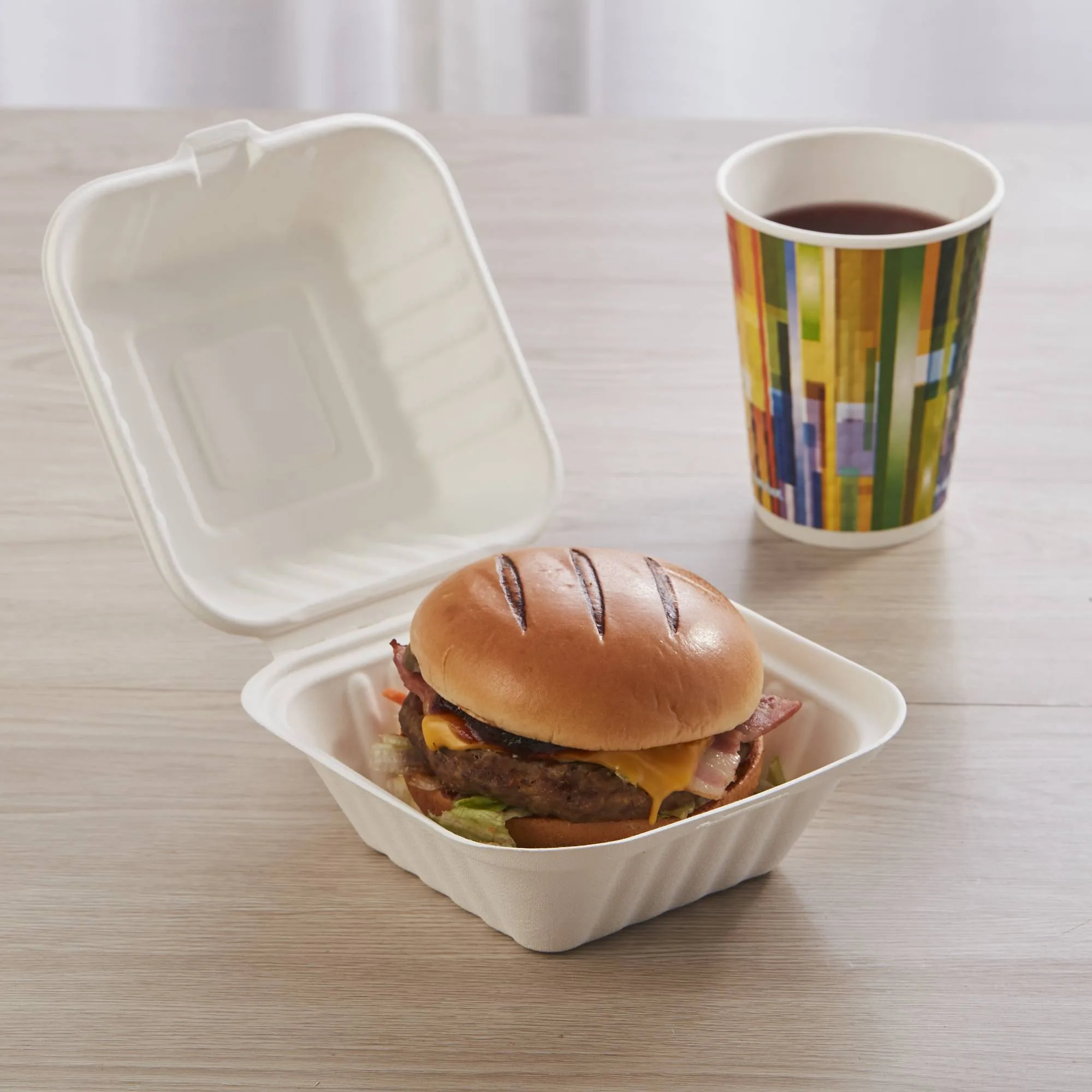 丈夫で漏れにくいクラムシェルデザインは、ハンバーガー、サンドイッチ、揚げ物などを新鮮なまま保存できます。自然な仕上がりは、顧客とのあらゆる接点で持続可能性へのコミットメントを示します。