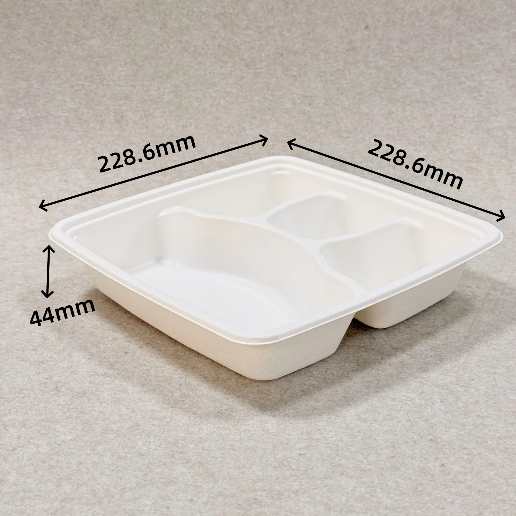 | Product Name: | Sugarcane Food Container with Lid (9″ x 9″ 4 Compt.) |