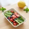Besides vegetables, it can also be used for bakery items, snacks, or light fresh food packaging where a compact compostable tray is preferred.