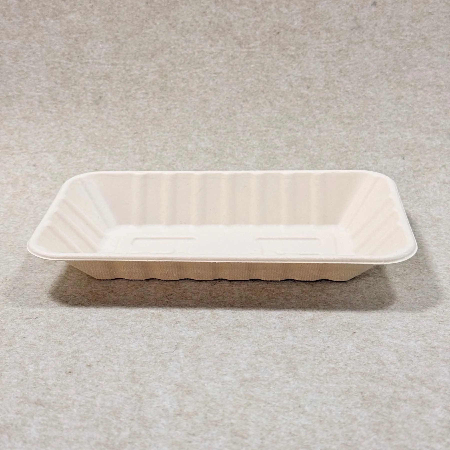 Este moldagem de pasta de fibras cria um tabuleiro que é leve mas estruturalmente estável, com uma superfície limpa, forma empilhável e acabamento mate natural. Em comparação com as embalagens convencionais à base de petróleo, tabuleiros de bagaço apoiar uma economia mais sustentável, sem plástico orientação das embalagens para os produtos frescos e para a venda a retalho.