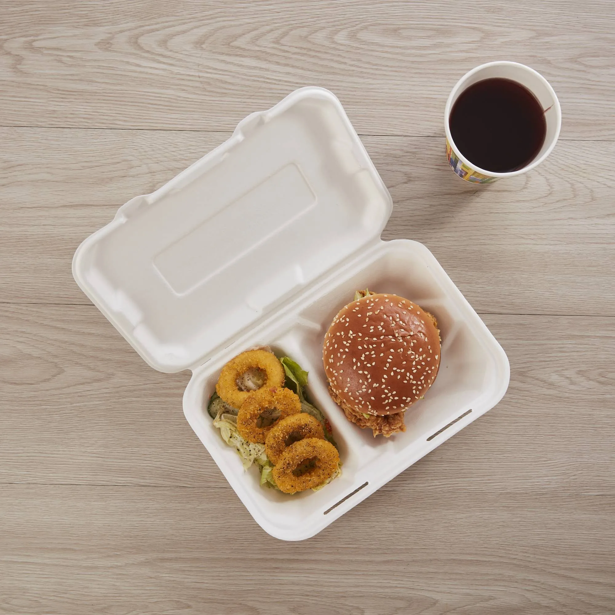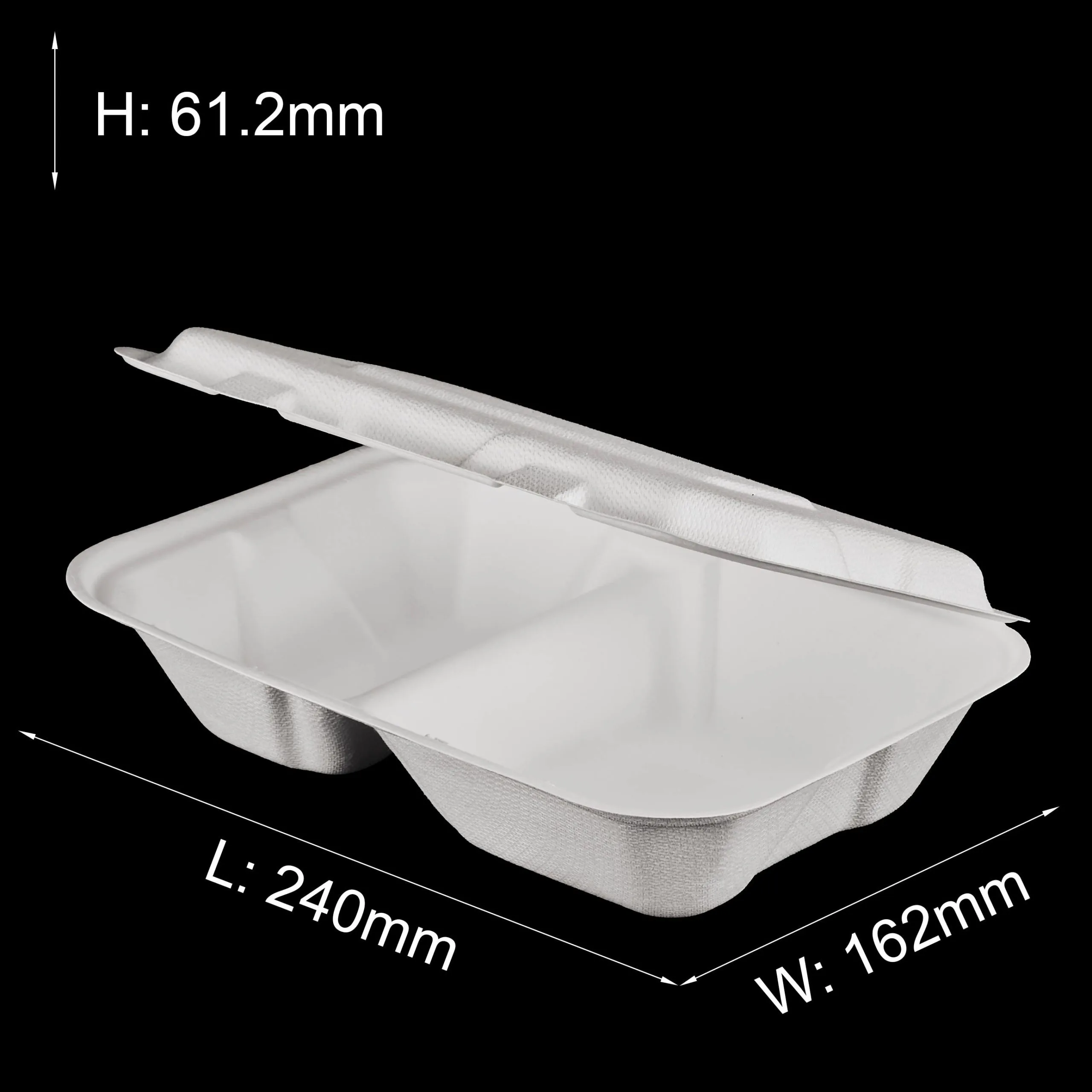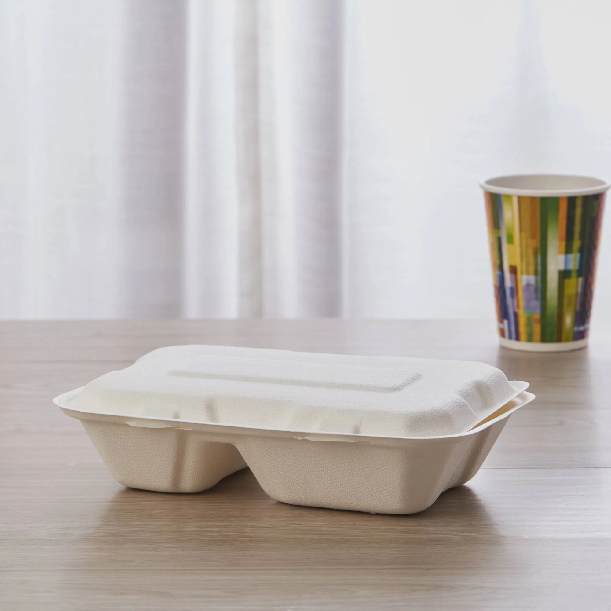 | Название продукта: | Коробка из багассы сахарного тростника 9″ x 6″ с 2 отделениями |